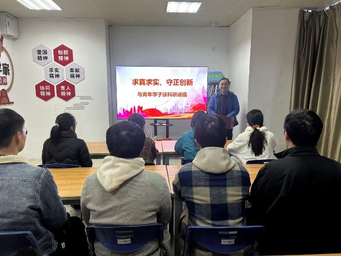 谢老师的讲座侧重于科研价值观的塑造。他从“钱学森之问”引入,阐述了学术诚信与创新能力培养之间的内在联系。他指出,“求真求实”是“守正”的根基,要求我们忠于观察、忠于数据;而“守正”又是“创新”的前提,只有在坚实的真理基础上,才能迸发出有价值、能落地的创新。“没有‘守正’的‘创新’,是无源之水、无本之木,甚至可能沦为哗众取宠的‘学术泡沫’。”谢老师鼓励同学们,要勇于做“慢科研”,敢于在枯燥的重复实验中探寻真知,在寂寞的理论推导中发现规律。他特别强调了学术共同体中的合作诚信与对话诚信,要求大家在学术讨论中坦诚相见,在合作研究中明晰权责,共同维护风清气正的学术生态。