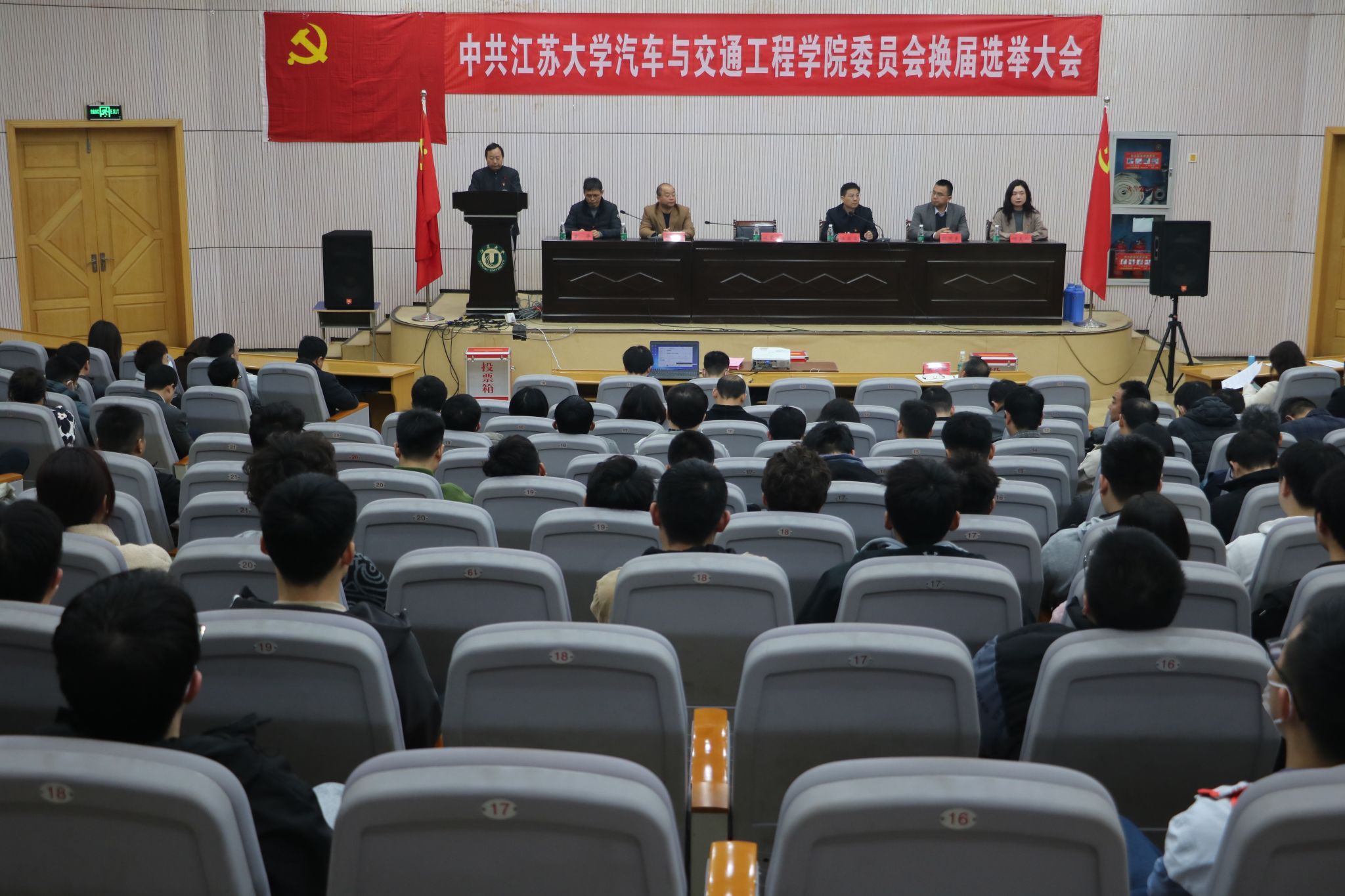 之后,大会审议表决通过了《中共汽车与交通工程学院委员会换届选举办法》,大会对预备人选进行了讨论和表决,最后与会党员根据大会要求选出了新一届学院党委委员:王攀、汪若尘、何美玲、杨建、施爱平、耿国庆、薛红涛(根据姓氏笔画排名)。最后大会在雄壮的《国际歌》声中圆满结束。