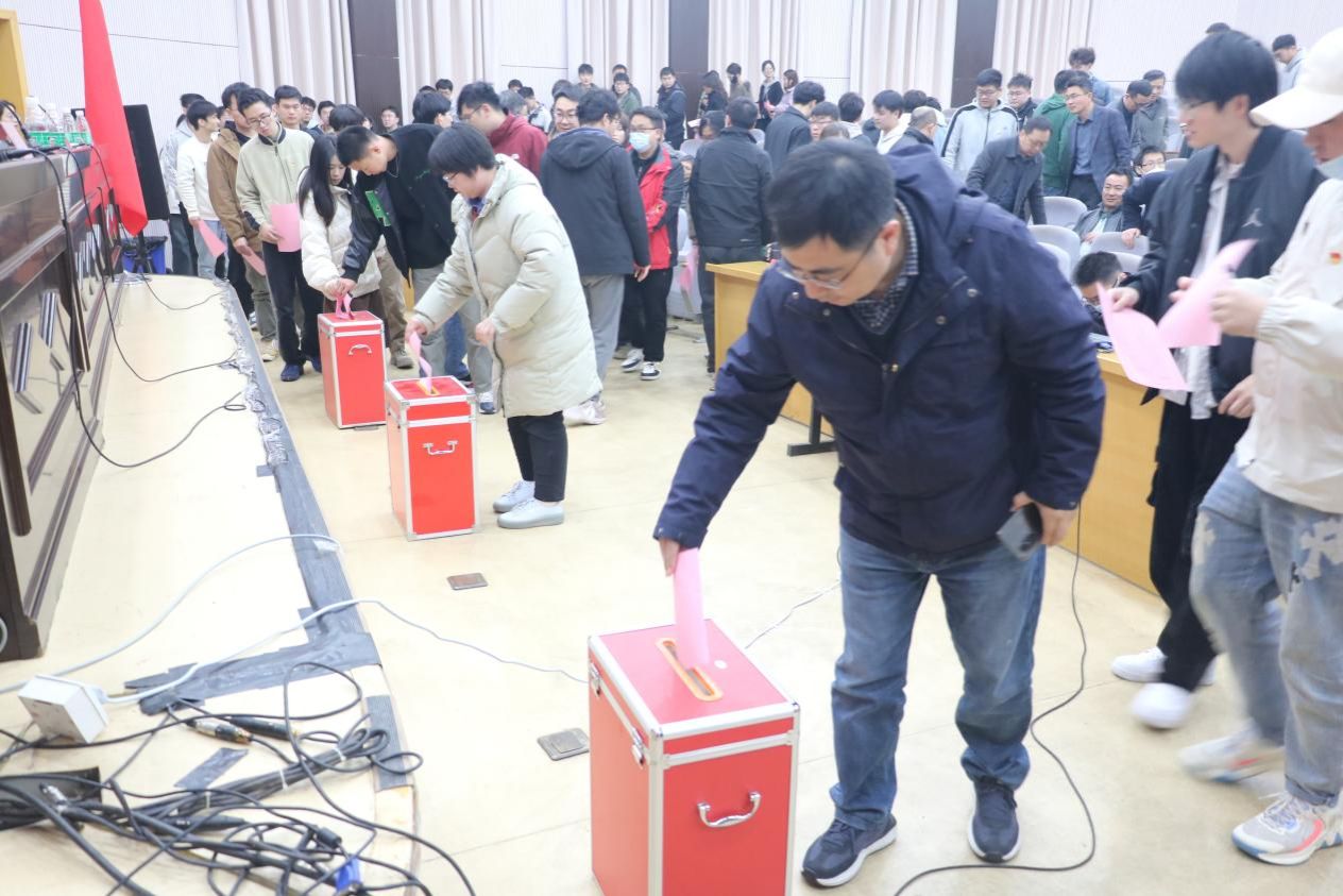 本次大会主要任务是听取和审议第六届党委工作报告,采用无记名投票方式选举第七届学院党委委员。本次大会应到正式党员283人(其中有选举权的正式党员253人),实到250人(其中有选举权的正式党员230人),符合选举规定。新一届学院党委拟由7人组成,设党委书记1人、副书记2人,由党员大会采取差额选举的办法选举产生,拟推选党委委员候选人预备人选9人,差额2人。