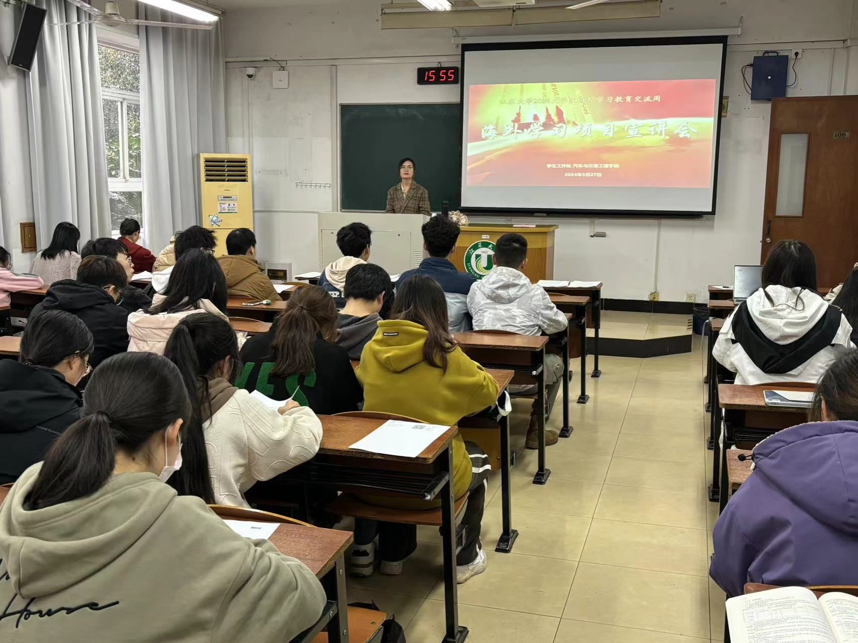 为促进学生的全面发展和国际化视野的拓展,3月27日下午,海外学院联合我院在三山楼内举办了一场主题为“海外项目宣讲进学院”的活动。此次活动由江苏大学海外教育学院Lisa老师主讲,有意向参加本次暑期海外项目的50余名我院学生参加。