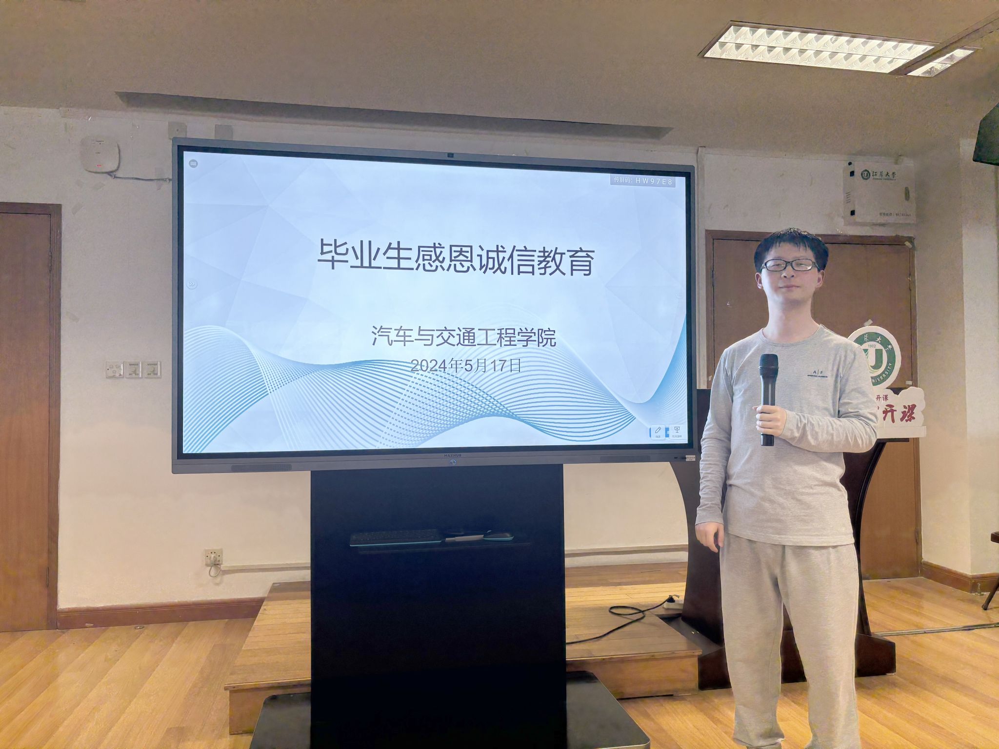 为了进一步加强毕业生的感恩意识和诚信意识,引导研究生提高征信意识,促进学生的全面发展,5月17日,汽车学院在311报告厅,开展了2024届毕业研究生“诚信感恩”教育活动,由汽车学院研究生辅导员汪峥嵘主持,全体2024届毕业研究生参加。