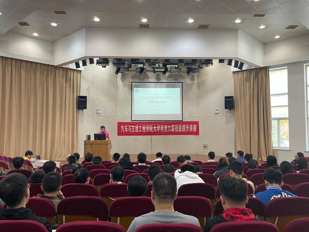 为迎接即将到来的大学英语六级考试,提升六级通过率,10月27日下午,汽车学院在成教楼报告厅举办了“大学英语六级技能提升讲座”。讲座由2020级辅导员杨扬老师主持,邀请了星火英语的吴老师和在今年6月大学英语六级考试中取得佳绩的徐乐、朱郑恺同学作为嘉宾,我院部分学生参与此次讲座。