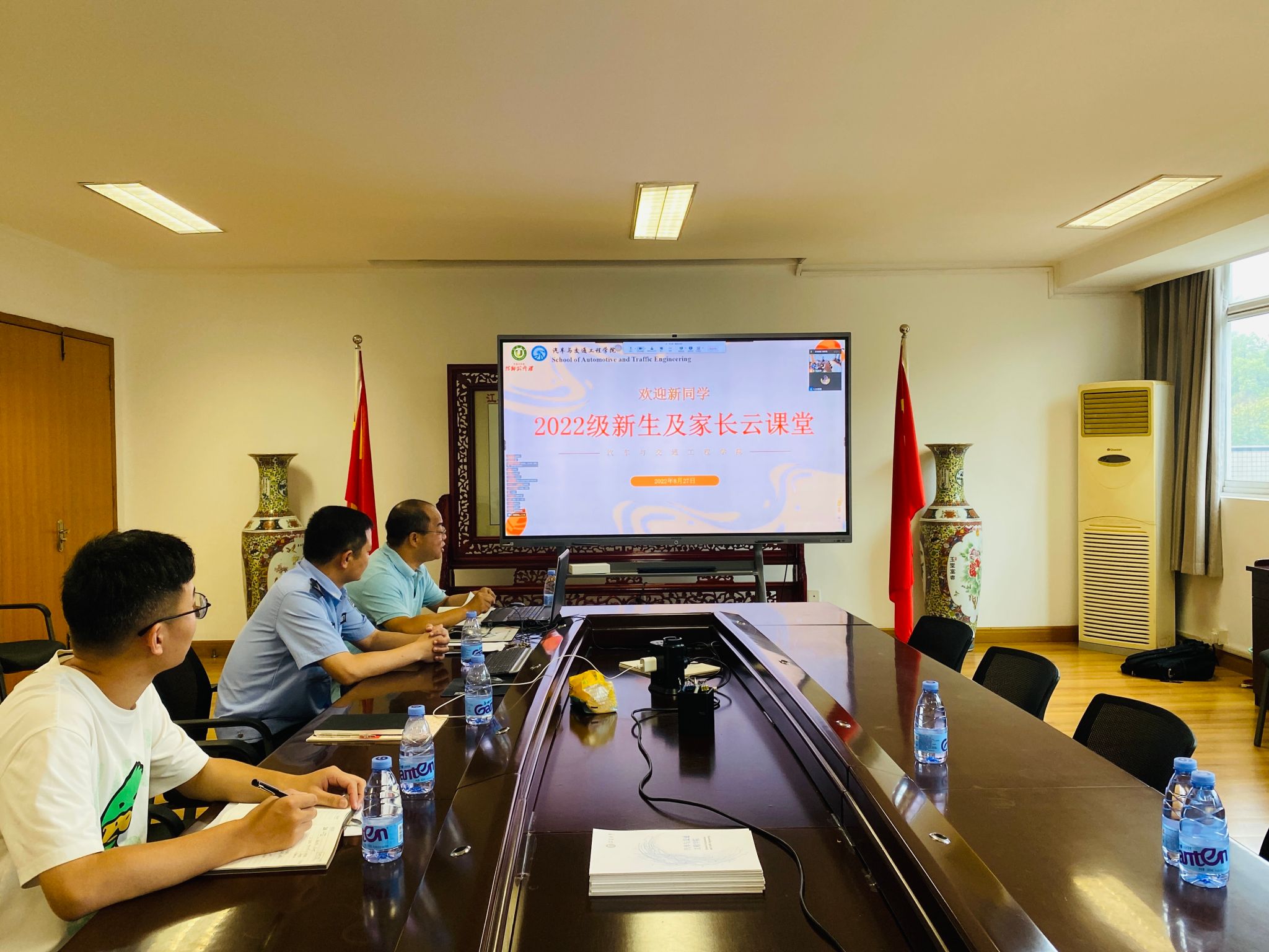 8月27日,汽车学院2022级新生及家长课堂在腾讯会议平台线上举行,此课堂由汽车学院党委副书记、副院长杨建主持,学府路派出所民警冯珍全、校心理健康教育中心曹韵秋、2022级新生辅导员孙姗姗、刘波涛、2022级新生与家长参与此云课堂。