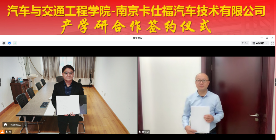 11月30日下午,我院与南京卡仕福汽车技术有限公司举行产学研合作云签约仪式。签约仪式上尹必峰院长与南京卡仕福汽车技术有限公司总经理杨华凯共同签署了产学研合作协议。希望通过此次合作,进一步加强高校与企业在人才培养、产学研项目及平台建设上的合作,实现共赢。通过产学研项目实施,突破汽车工业软件难题,掌握仿真管理平台的关键核心技术,提升CAE仿真分析的效率和质量,提高中国仿真管理软件的全球市场竞争力。