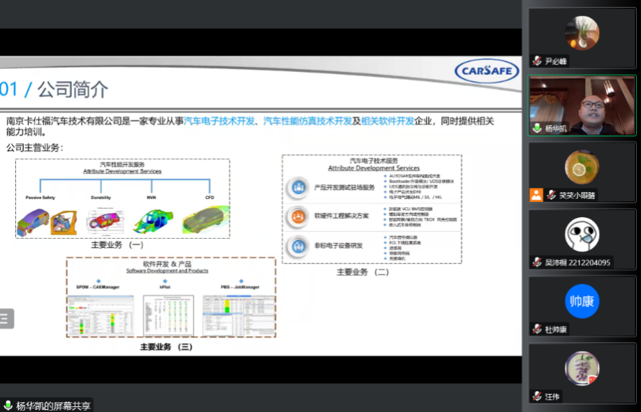 签约仪式结束后,杨华凯总经理作了题为《汽车CAE软件自主开发与应用》的学术报告,我院100多名师生在线参加了报告会。