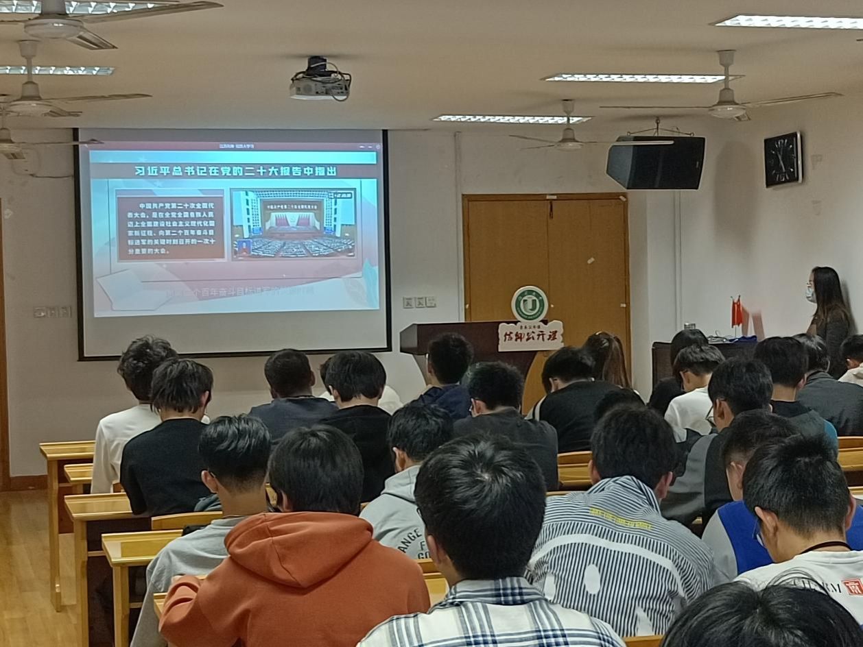 专题报告会后,为深入学习宣传贯彻党的二十大精神,加强入党积极分和党员的教育培训,使积极分子端正入党动机,保证党的先进性和纯洁性,全体成员共同观看学习了江苏省句容市天王镇戴庄有机农业专业合作社研究员、镇江市人大常委会原副主任赵亚夫深刻领会党的二十大主题学习视频。