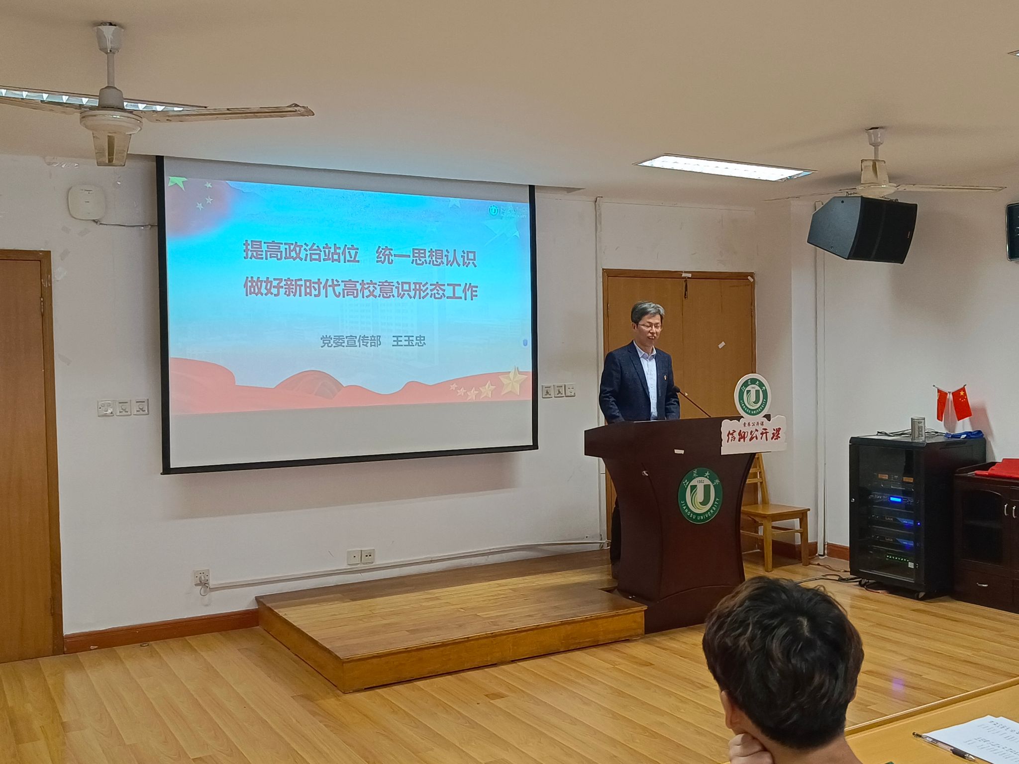 随后,校党委宣传部副部长王玉忠为学员作了题为“提高政治站位,统一思想认识,做好新时代高校意识形态工作”专题报告,他从意识形态的重要性、意识形态面临的挑战以及新时代意识形态的工作开展三个方面为大家讲解了意识形态工作,他讲到要坚持马克思主义在意识形态领域指导地位的根本制度,以社会主义核心价值观为引领。坚持正能量是总要求,管得住是硬道理,用的好是真本事;指出当前意识形态工作总体形式是向上向好的,但意识形态领域仍不平衡,互联网已经成为意识形态的主阵地,意识形态领域面临社会主流价值观遭遇市场挑战、网络文化浸染等诸多挑战。他号召同学们要保持政治清醒和政治坚定,充分发挥先锋模范作用,做知法守法的合格大学生。