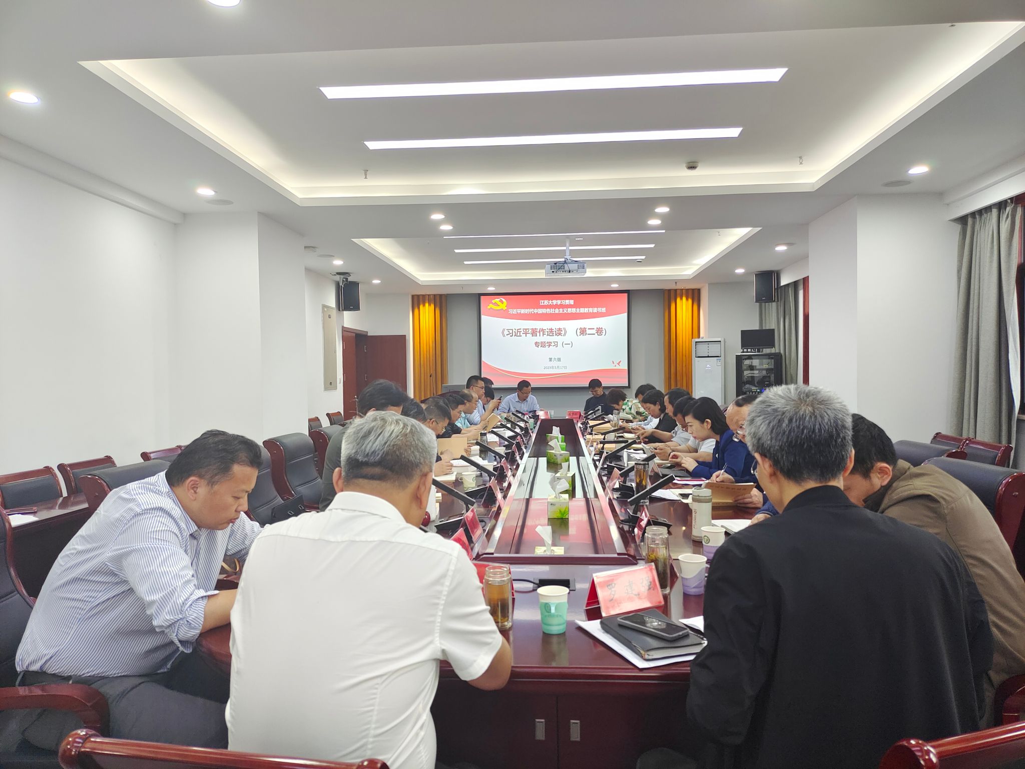 5月17日,江苏大学学习贯彻习近平新时代中国特色社会主义思想主题教育读书班第六组在耒耜大楼F304专题学习《习近平著作选读》第二卷。本次学习由农业工程学院党委书记金玉成主持,第六组读书班全体成员参加学习交流。