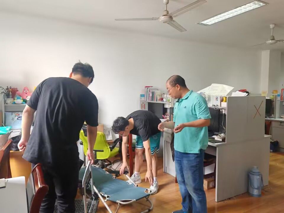 6月29日,汽车学院党委副书记、副院长杨建,在研究生辅导员陶旺仔和汪峥嵘的陪同下,前往我院各研究生工作室开展暑期留校研究生工作室安全卫生检查和评比活动。
