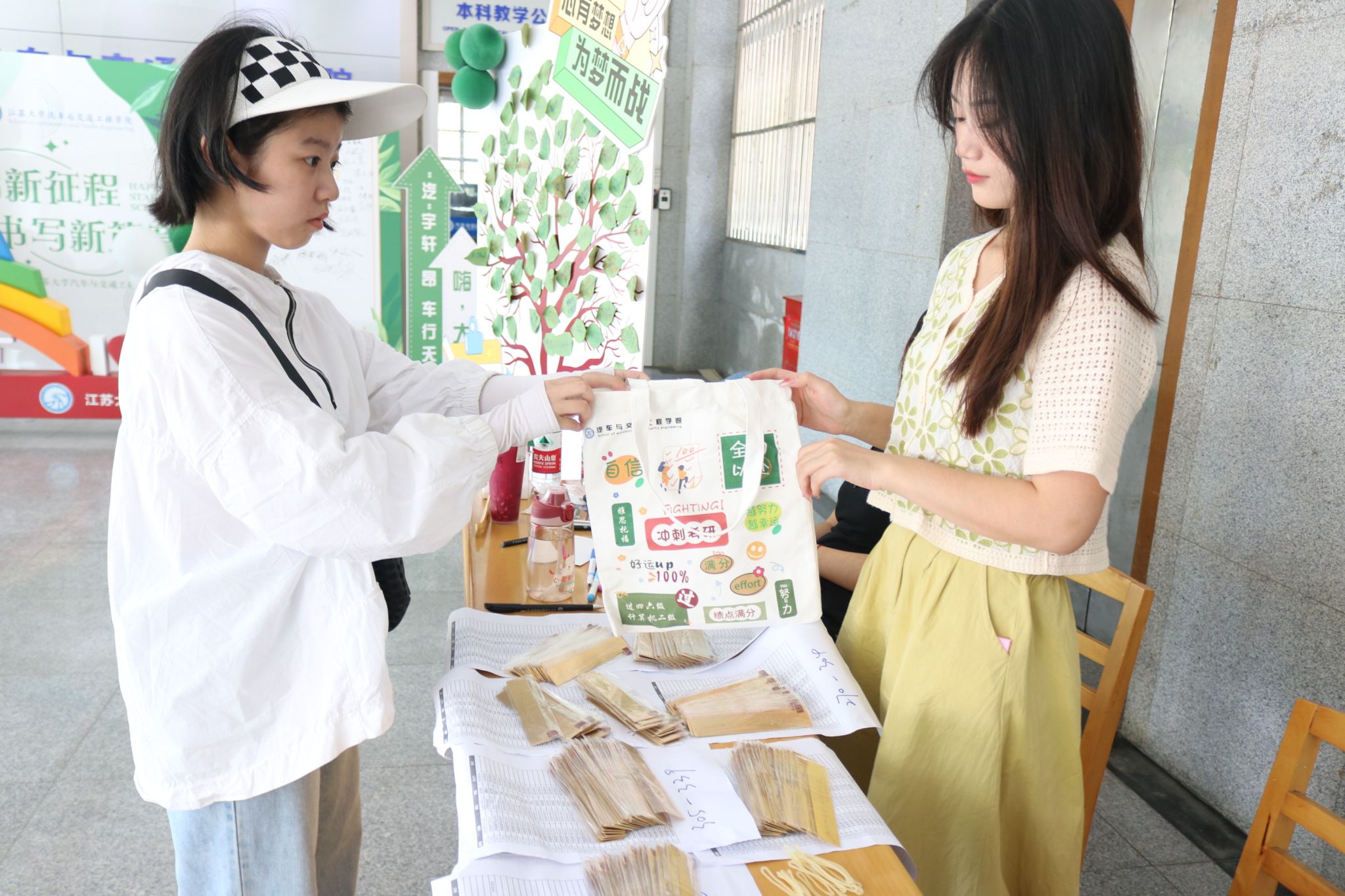 首先,志愿者们为汽车学院2023级新生发放汽车学院入学定制礼包,其中包括学院定制帆布袋、刻有学生姓名的专属直尺及学院定制的防诈骗宣传笔。