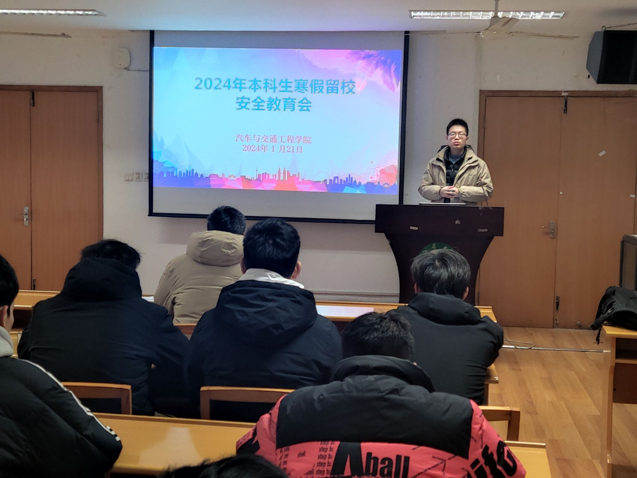 为充实学生的寒假生活,提高安全意识,1月20-21日,汽车学院召开2024年寒假留校学生会议,其中,留校本科生在汽车楼2311会议室召开,由辅导员柴弘枫主持,留校研究生在企业微信平台在线召开,由辅导员汪峥嵘主持。
