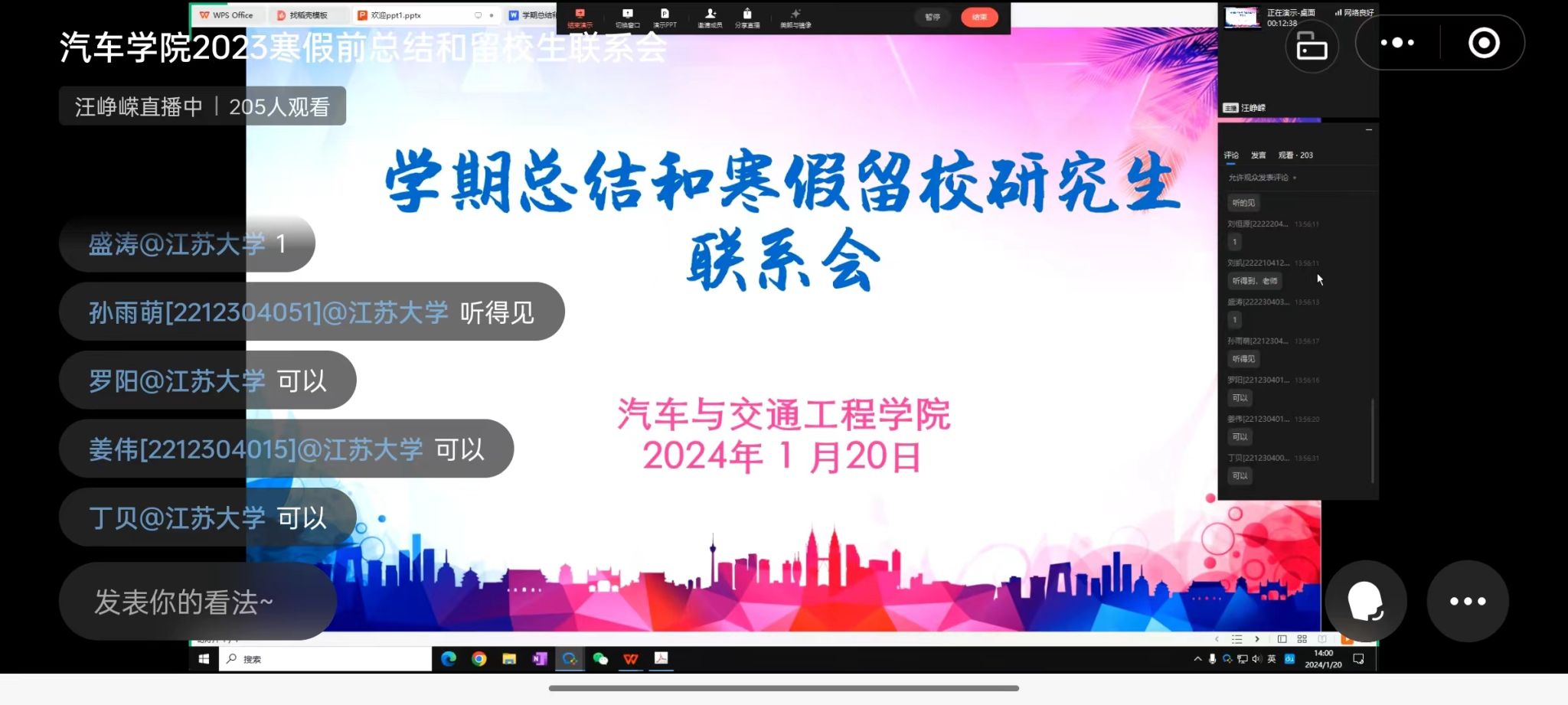 最后,两位老师就学生在寒假期间所关心的问题作了解释说明,也向全体学生转达了学院领导和全体老师对他们的新年祝愿。