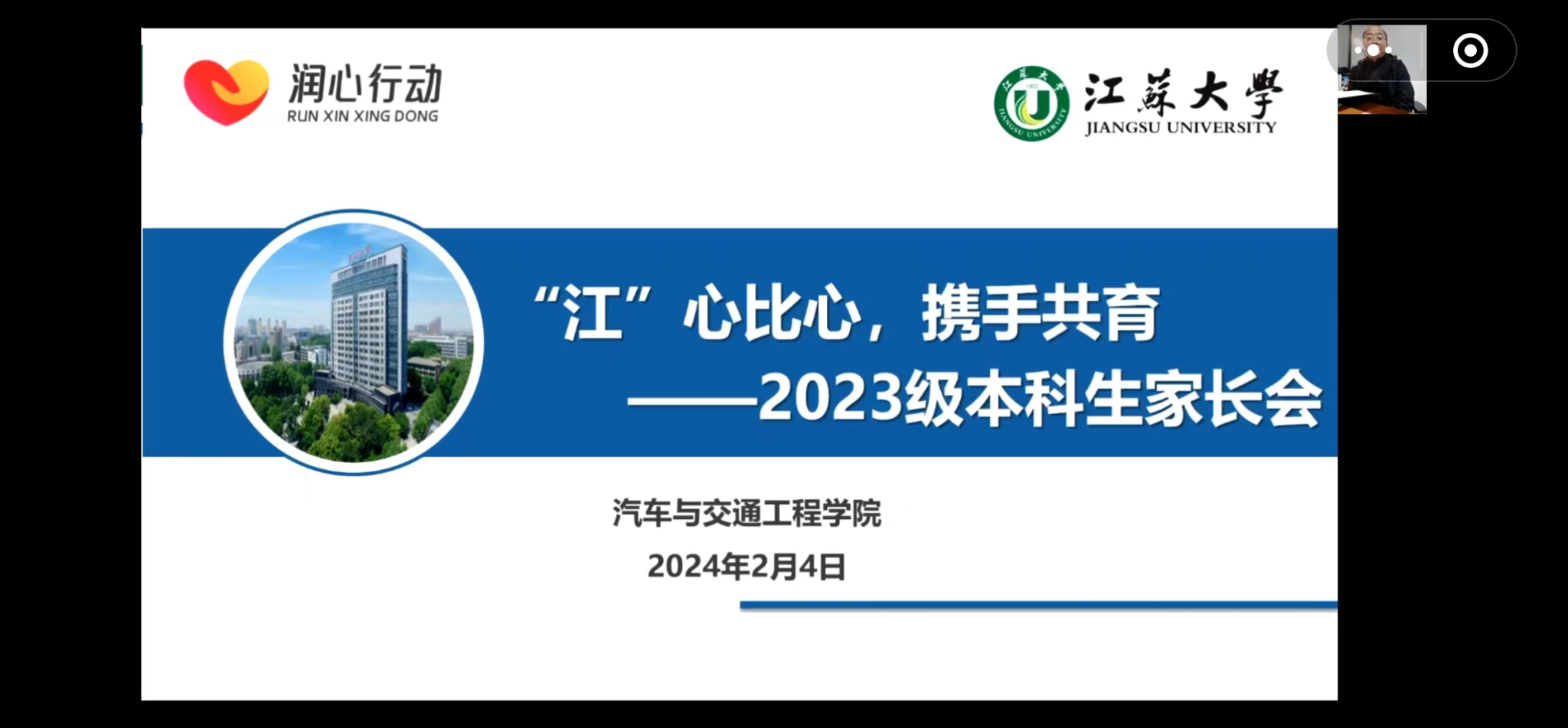 2024年2月4日,汽车学院通过网络直播的方式举办了2023级本科生家长会,汽车学院党委副书记、副院长杨建,辅导员张杜、柴弘枫参加了此次家长会。