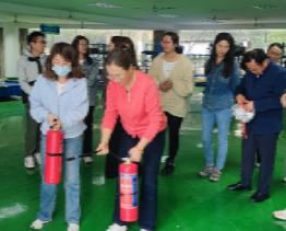 在消防实操演练开始前,培训人员从火灾形势、如何开展消防检查、火灾处置和器材使用等多个方面,紧紧围绕火灾自救技能等典型案例,详细讲解日常生活和科研活动中如何快速扑灭火苗、迅速逃生等消防常识,让大家加深对消防知识的了解。培训人员针对干粉灭火器、水基灭火器的使用场合进行了讲解,现场演示了灭火器使用的具体步骤并强调了使用过程中的注意事项。在学院各消防重点区域,培训教师介绍了室内消火栓的使用流程,示范了水管、接头及水枪的连接方式,演示了过滤式消防自救呼吸器的开启流程并说明了具体佩戴过程中可能出现的错误。随后,参加活动的教师分四组,在不同区域内分别进行操作演练,完成了灭火器的模拟使用、过滤式消防自救呼吸器的佩戴、及消防水管的铺设和连接操作。
