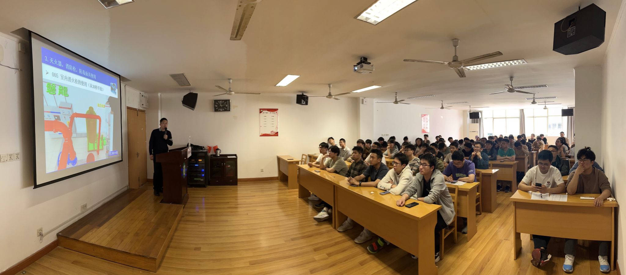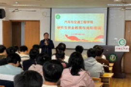 为进一步强化消防安全意识,普及灭火逃生知识、提升我院研究生应对突发火情的避险自救及应急处置能力,4月25日上午,汽车学院在二楼中心实验室教室和三楼311会议室,分年级分批次为全院研究生开展了安全教育与消防培训。院党委书记施爱平、副院长耿国庆和汽车学院300余位研究生参加了此次活动。