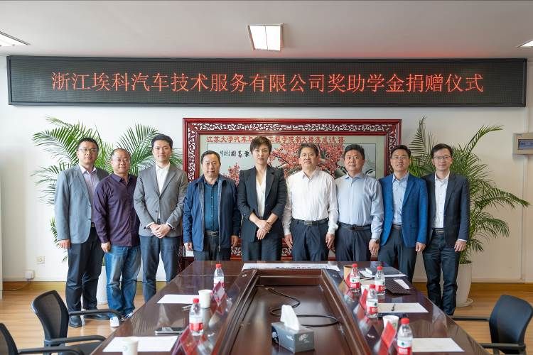 浙江埃科汽车技术服务有限公司总部位于浙江宁波,是一家提供汽车及其零部件检测、国际认证、智能网联系统开发、智能座舱软硬件设计、核心产品产业化服务为一体的综合性技术服务机构。经过近20余年的深耕与探索,现已成为汽车认证检测头部企业,在行业内拥有较高知名度及良好口碑。为加强产学研合作,深化产教融合育人,本次埃科公司慷慨解囊向学院捐赠奖助学金150万元,主要用于奖优助困及赛车研发、交通大赛等学生创新科研活动。