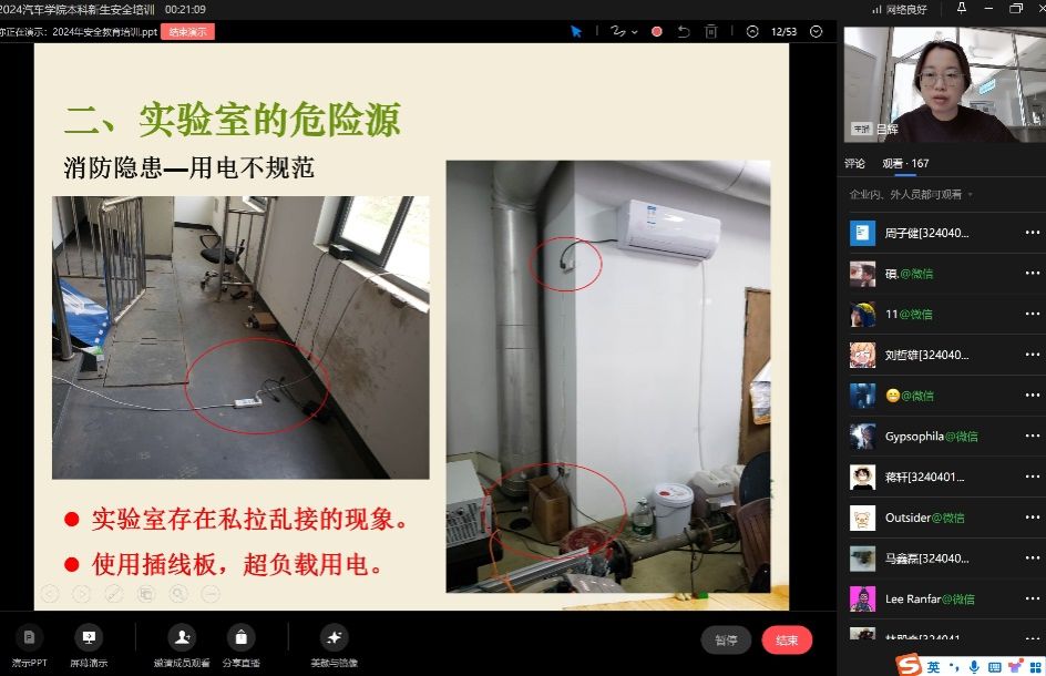 10月9日下午,我院中心实验室成功举办针对2024级新生的线上实验室安全教育培训。此次培训由吕辉老师主讲,目的在于加强实验室安全管理,普及实验室安全知识,预防安全事故,提升新生的安全意识和自我保护能力。
