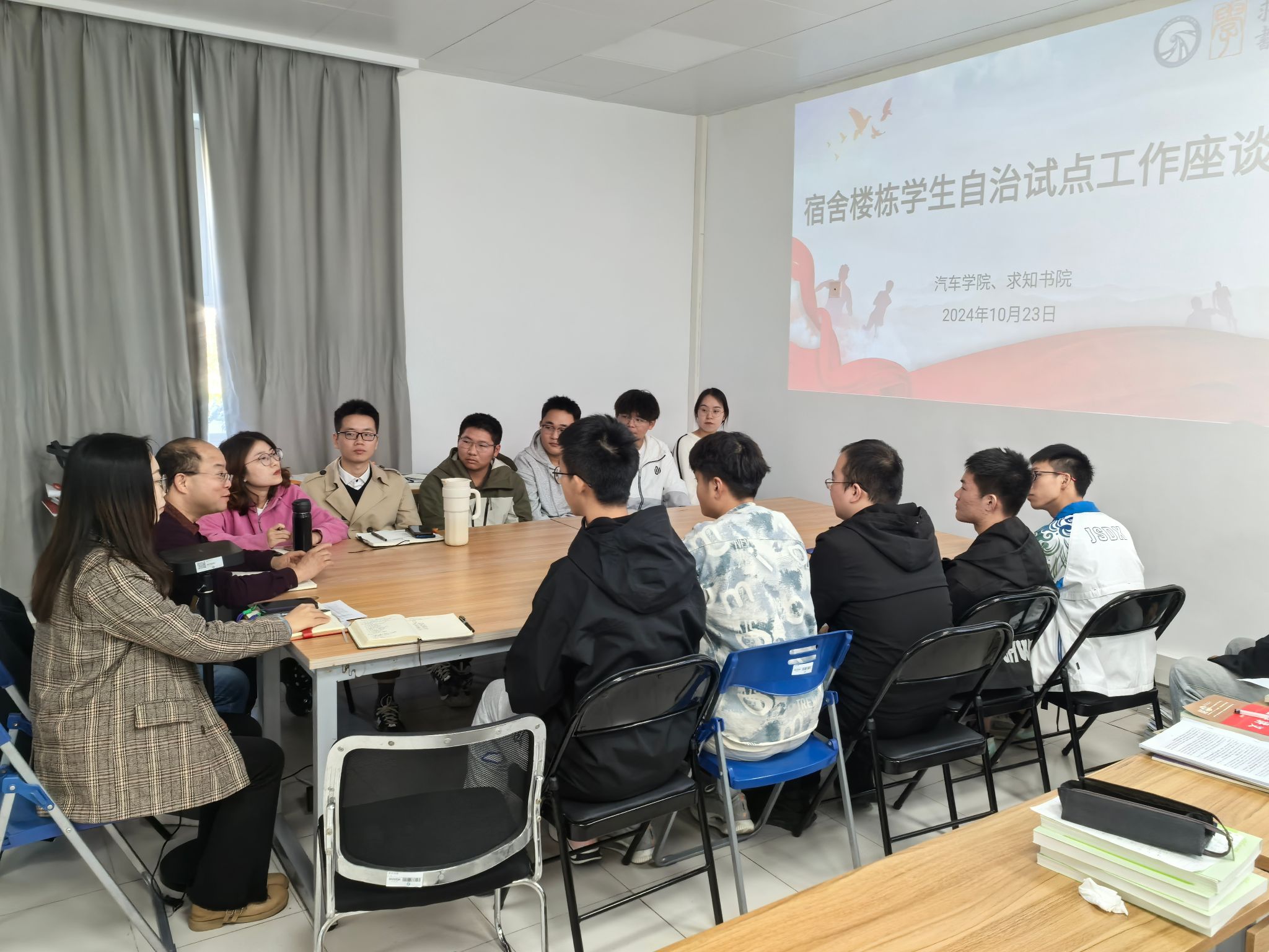 10月23日,为进一步提升学生社区自治水平,汽车学院在求知书院会议室举办学生社区自治楼栋楼、层长座谈会。本次会议由汽车学院党委副书记、副院长杨建主持,楼委会主任、汽车学院辅导员丰德、杨扬,楼委会副主任、求知学院辅导员孙姗姗以及学生宿舍D区3栋楼、层长参加。