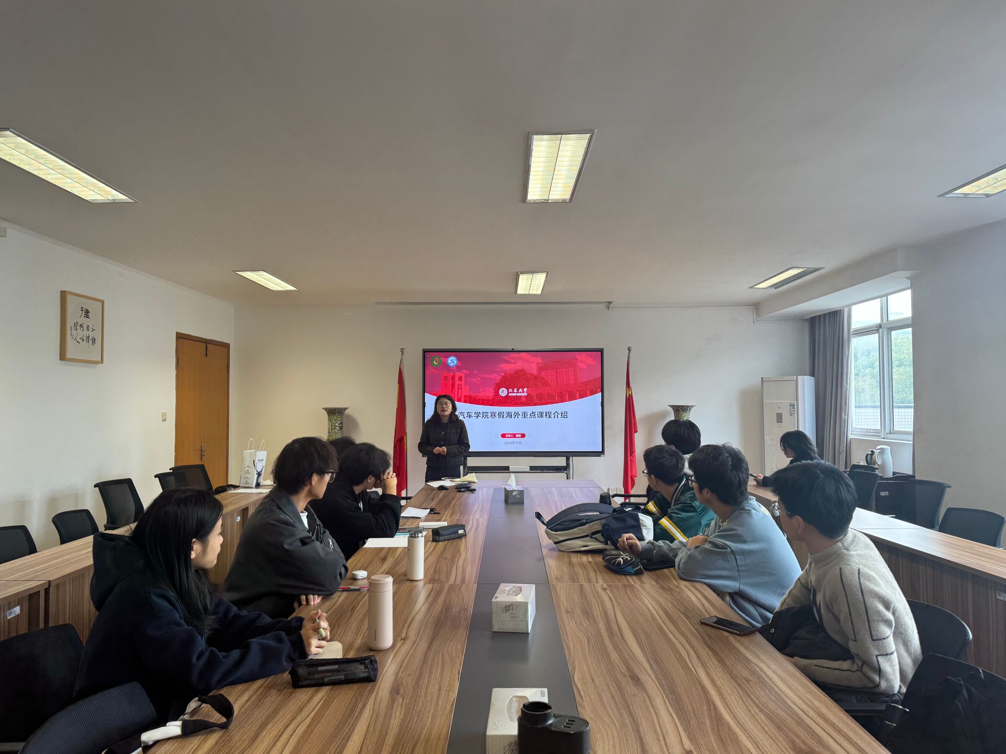 为拓展大学生国际化视野、提升国际化能力,11月21日,汽车学院在汽车楼310会议室举办2025年寒假海外项目宣讲会,会议由2020级本科生辅导员杨扬老师主持,2023级部分本科生参加活动。