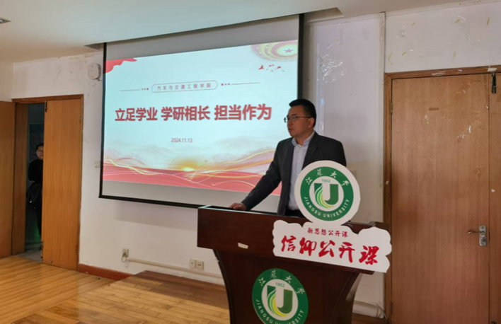 2024年11月13日,汽车学院副院长耿国庆为汽车学院硕士生第二党支部在311会议室讲“立足学业、学研相长、担当作为”主题党课。