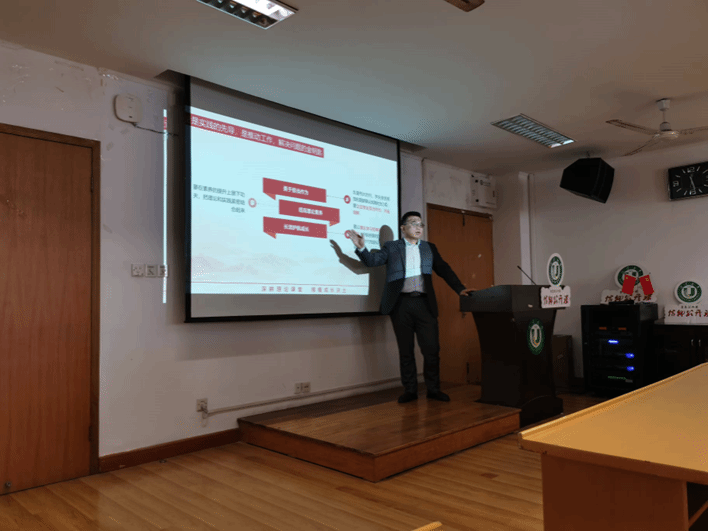 耿国庆副院长指出,理论是实践的先导,是推动工作、解决问题的金钥匙,作为学生党员生在伟大时代,作为党和国家事业发展的主力军,要立足学业担当作为、开拓创新,要进一步提高理论素养,把理论学习常态化、长效化,护航自身的成长与进步。在具体的实践过程中,学生党员要做到“变被动为主动,真学真知”、“变短期为长期,入脑入心”、“变浅学为真学,走深走实”。随后,耿国庆教授以其自身的发展历程为例,讲述了理论学习与实践的重要性,并介绍了多位杰出校友的学习、工作历程,以更好地激励学生党员们培养“持之以恒、久久为功”的奋斗精神。