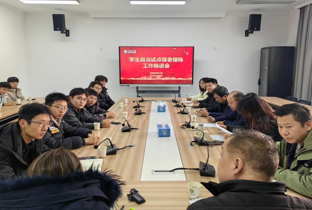1月10日,学生自治试点宿舍楼栋工作推进会在学苑楼207会议室举行。学工处副处长张芬,安保处副处长张文忠,汽车学院党委副书记杨建,宿舍楼栋学生自治委员会全体成员,学生社区管理服务中心、公寓服务中心工作人员等参加会议,会议由杨建书记主持。