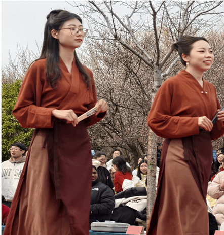 在T台秀环节,汽车学院的女教师们身着精心准备的宋代服装,自信地走在红毯上,充分展现了各自的个性与魅力。红毯两旁,观众们纷纷投来赞赏的目光,为她们的精彩表现鼓掌。
