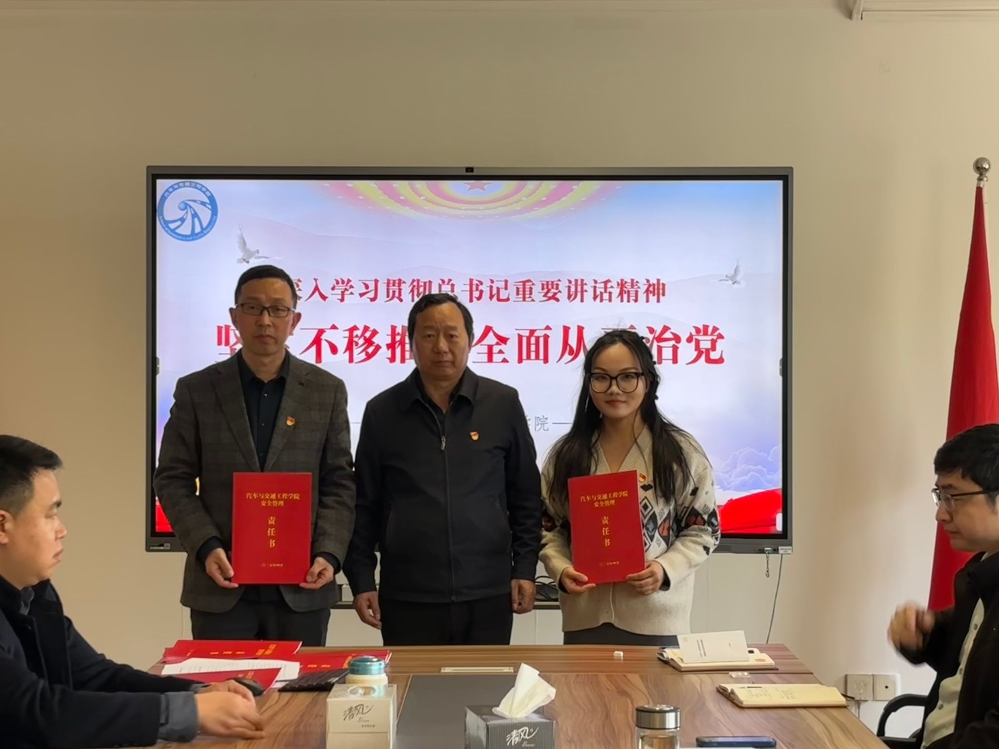 随后,全体院党委委员和各党支部书记依次向院党委书记施爱平递交了《汽车与交通工程学院2025年度全面从严治党责任书》和《汽车与交通工程学院2025年度意识形态工作责任书》,院领导与各系(室)负责人签订了《汽车与交通工程学院2025年度安全管理责任书》,层层压实党建和安全责任。
