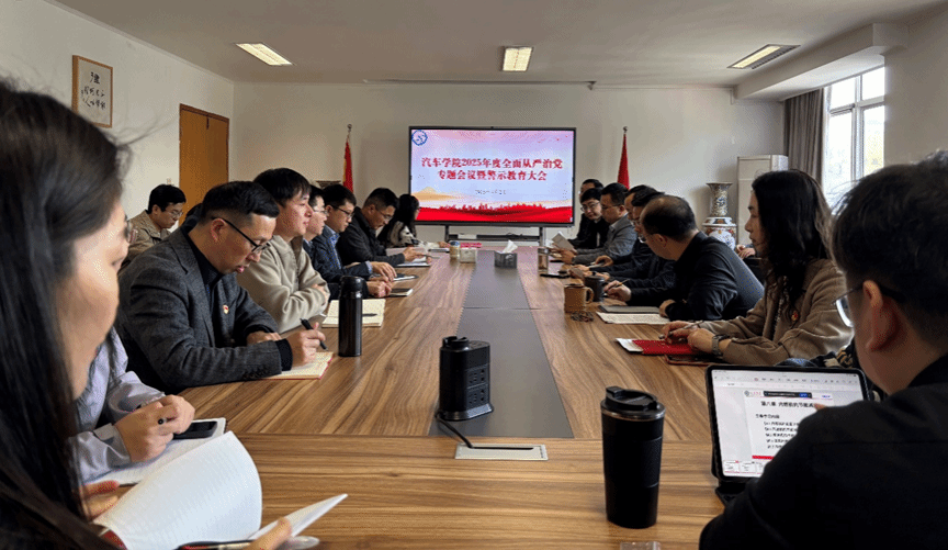 4月2日下午,汽车学院在310会议室召开了2025年度全面从严治党工作会议暨警示教育大会。汽车学院党政领导班子全体成员、党委委员、全体科级干部、支部全体委员、各系(室)正副主任、教师代表等参加会议,汽车学院党委副书记、院长汪若尘主持会议。