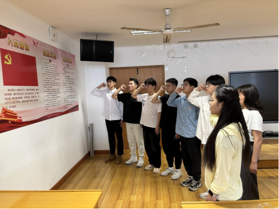 在领誓人曾罗欢的带领下,新党员们面向党旗,举起右拳,庄严宣誓,誓言铮铮,响彻云霄,表达了新党员们对党的无限忠诚和为共产主义事业奋斗终身的坚定决心。随后的寄语环节,党支部书记胡南镕鼓励新党员们务必要牢记誓言,时刻以党员的标准严格要求自己,在今后的学习和生活中,充分发挥先锋模范作用,以实际行动践行党的宗旨,为党和人民的事业不懈奋斗。