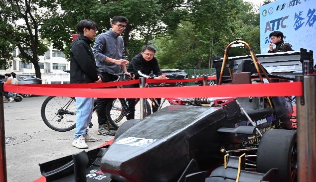 此次活动恰逢江苏大学车辆学科65周年庆典,该庆典邀请了众多杰出校友返校共襄盛举。上午新车发布会结束后,全体队员将活动现场延伸至学校大礼堂边的三岔口,炫酷的碳纤维原色赛车与青春洋溢的队员迅速成为校园焦点。返校校友与在校师生纷纷驻足,或与技术队员探讨赛车设计精髓,或分享行业前沿动态,更有多位校友与赛车合影,将这份对车辆工程的热爱定格为永恒记忆。这场跨越代际的交流盛宴,不仅彰显了赛车队活动的强大辐射力,更成为传承车辆学科精神、凝聚校友力量的生动实践。