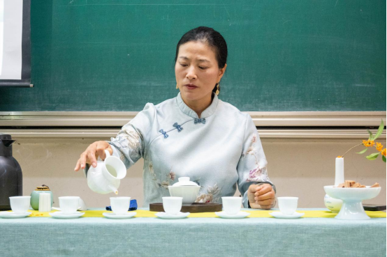随后,主讲人身着典雅服饰,在精心布置的茶席前,现场演示了从备器、赏茶到冲泡、奉茶的完整流程。行云流水的动作与深入浅出的讲解,将茶艺的优雅、庄重与艺术性展现得淋漓尽致。