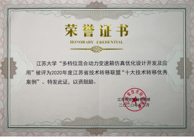 2020年12月24日,江苏省技术转移联盟2020年度会议在江苏省会议中心隆重举办,汽车学院节能与新能源动力总成研究所承担的产学研合作项目“多档位混合动力变速箱仿真优化设计开发及应用”荣获2020年度江苏省技术转移联盟“十大技术转移优秀案例”。