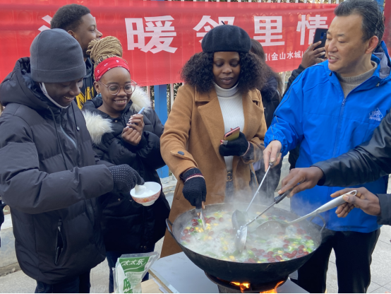 为弘扬中华优秀传统文化,讲好中国故事,1月18日,汽车学院赴金湖社区开展“浓情腊八粥 品味中华情”社会实践活动。活动由辅导员刘波涛、孙姗姗带队,来自尼日利亚、坦桑尼亚、越南、俄罗斯、加纳、巴基斯坦等国的12位留学生以及3位中国学生参与此次活动。