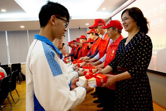 上午九点,在市烈士陵园“北固英烈”纪念群雕前,由市烈士陵园讲解员引导,为活动参与者进行了一次流动式“微党课”宣讲,大家静心聆听革命先烈的英雄事迹。在烈士事迹陈列馆,通过讲解员详细介绍以及珍贵的历史图片、实物资料,让大家重温当年中国共产党带领全国人民艰苦卓绝、浴血奋战的历史。同时,镇江市委老干部局作用发挥指导处处长赵丽丽和镇江市烈士陵园管理处党支部书记吴晓霞共同为“镇江市‘银发生辉’志愿服务总队志愿服务和红色教育基地”揭牌。在接下来的座谈会中,原镇江市质量技术监督局正处职退休干部、润州区五凤口社区非建制性常青松党支部书记朱昌圣给大家讲述了他的“初心故事”,鼓励团员青年守初心,担使命,用实实在在的行动创造无愧于时代、无愧于人民、无愧于自己的青春篇章。“银发生辉”志愿者向学生代表赠送党史文化学习教育书籍,勉励青年学生发扬红色传统、传承红色基因,做到学史明理、学史增信、学史崇德、学史力行。学生代表祁义恒作表态发言,向全体学生发出倡议,传承红色基因,坚定理想信念,铸牢信仰之魂。活动的最后,市“银发生辉”志愿服务总队长李洪号召在场的老干部,切实发挥老同志的政治优势,不忘初心、牢记使命,讲好红色故事,传承红色基因,通过坚持开展特色鲜明、形式生动的“银发生辉”志愿服务活动,引领良好风尚,构建和谐社会,让群众满意,为党旗增辉。