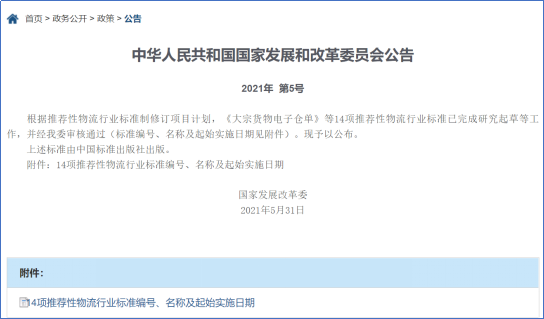 我院牵头起草的1项物流行业标准公开发布