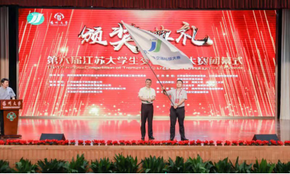2022年该项赛事将由我院承办,耿国庆副院长接过第七届江苏大学生交通科技大赛的大旗,向全场高校师生代表发出热烈欢迎——2022年江苏大学见!