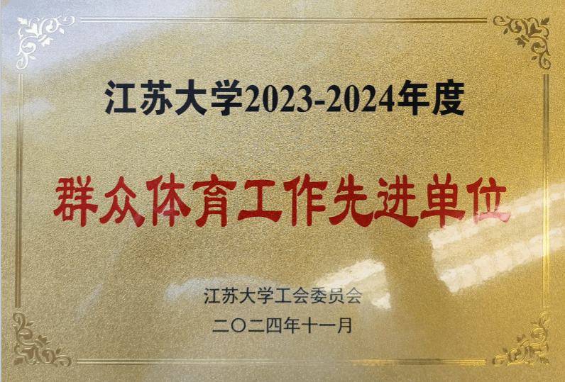 在学校对各工会组织会员参加校群众体育活动情况的考评中,汽车学院工会荣获“江苏大学2023-2024年度群众体育工作先进集体”称号。