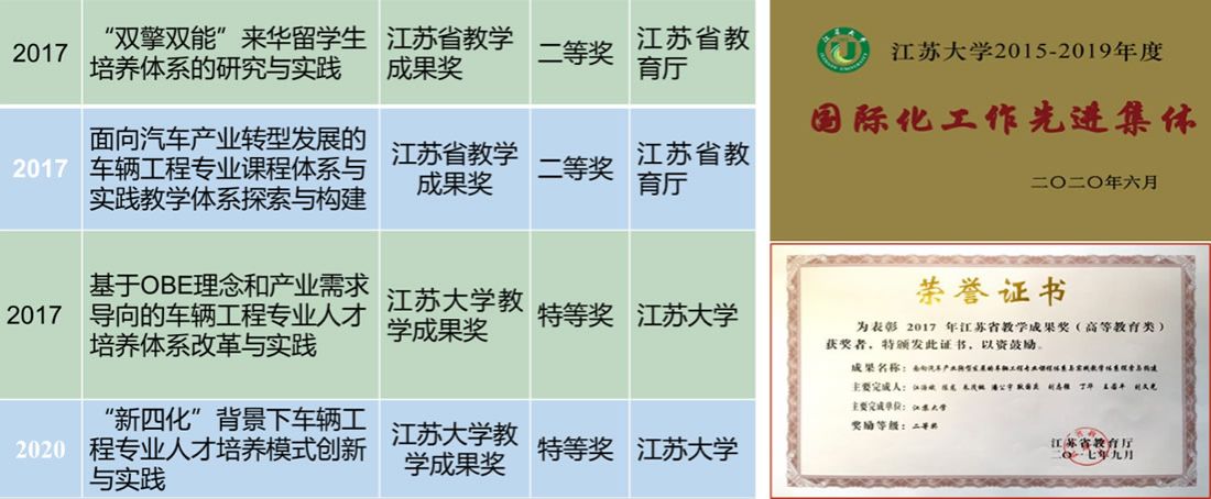 教育部教指委委员 1 人,江苏大学 教学名师 2 人