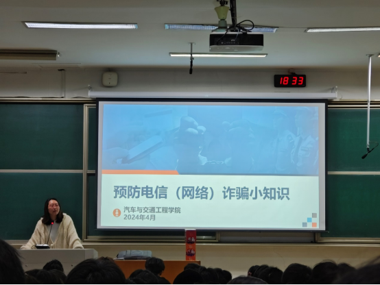 4月6日,汽车学院在讲堂群101开展“防范于心,反诈于行”防范电信网络诈骗专题讲座。讲座由本科生辅导员张杜主讲,2023级本科生参加。