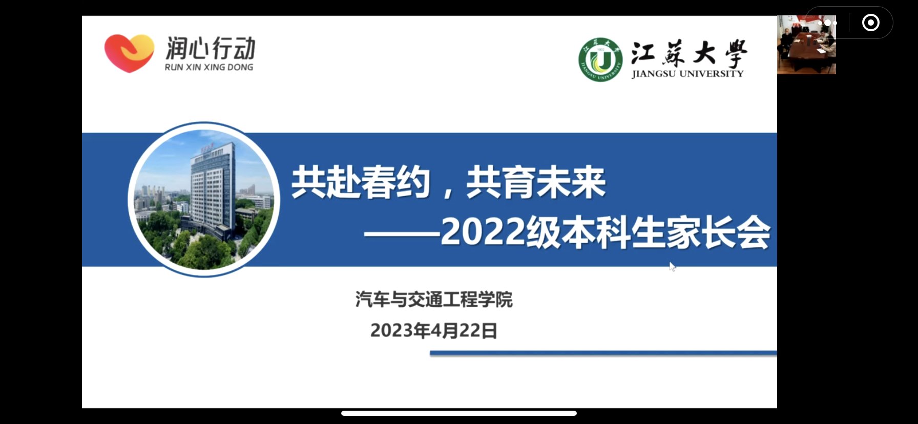为更好地构建学校家庭协同育人机制,帮助家长深入了解孩子在学校的学习及生活情况,4月22日,汽车学院通过线上会议方式举办了2022级本科生家长会,汽车学院党委副书记、副院长杨建,辅导员孙姗姗、刘波涛参加了此次家长会。