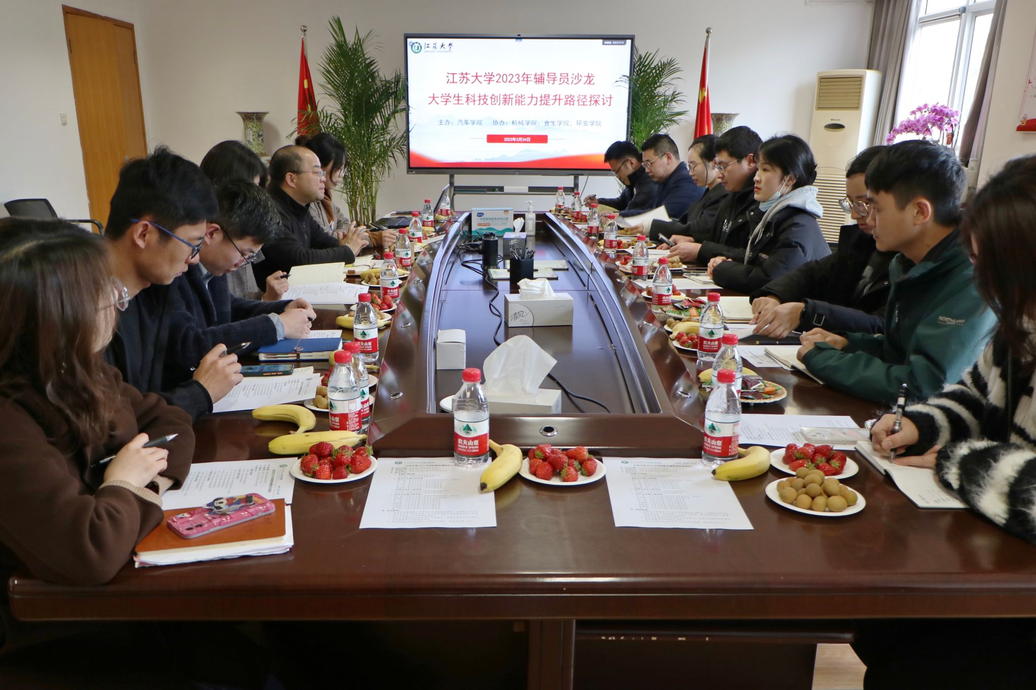 3月24日下午,汽车学院举办“大学生科技创新能力提升”四院联合辅导员沙龙活动,汽车学院党委副书记杨建出席沙龙,汽车学院、机械学院、食生学院和环安学院辅导员代表参加。本次活动由汽车学院辅导员王超越主持。