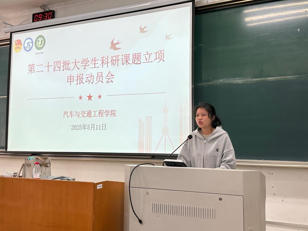 为鼓励学生积极参与课外学术研究、营造科研创新氛围,5月11日,汽车学院在讲堂群202举办第二十四批大学生科研课题立项申报动员会。学院党委委员、交通运输系副主任何美玲副教授受邀担任主讲嘉宾,全院百余名学生参会。
