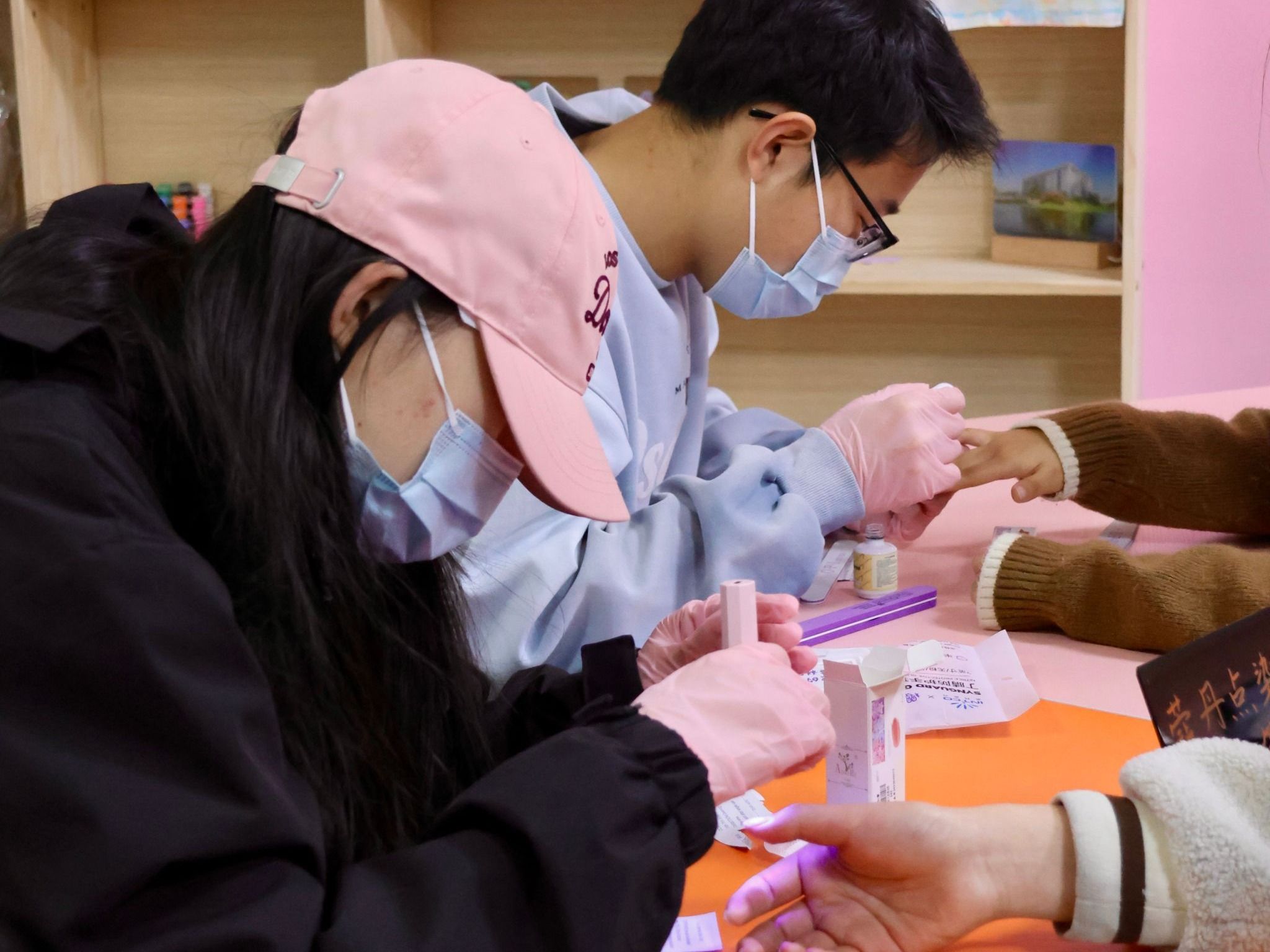 在美甲区,美甲师们围绕女性主题,以春日花卉的清新、几何图案的独立,在指尖上挥洒创意,为女同学们定制专属美甲。大家在享受美甲服务的同时,分享生活趣事,感受节日对女性美的认可与尊重。