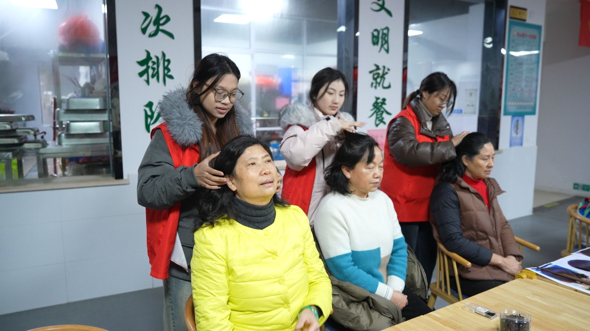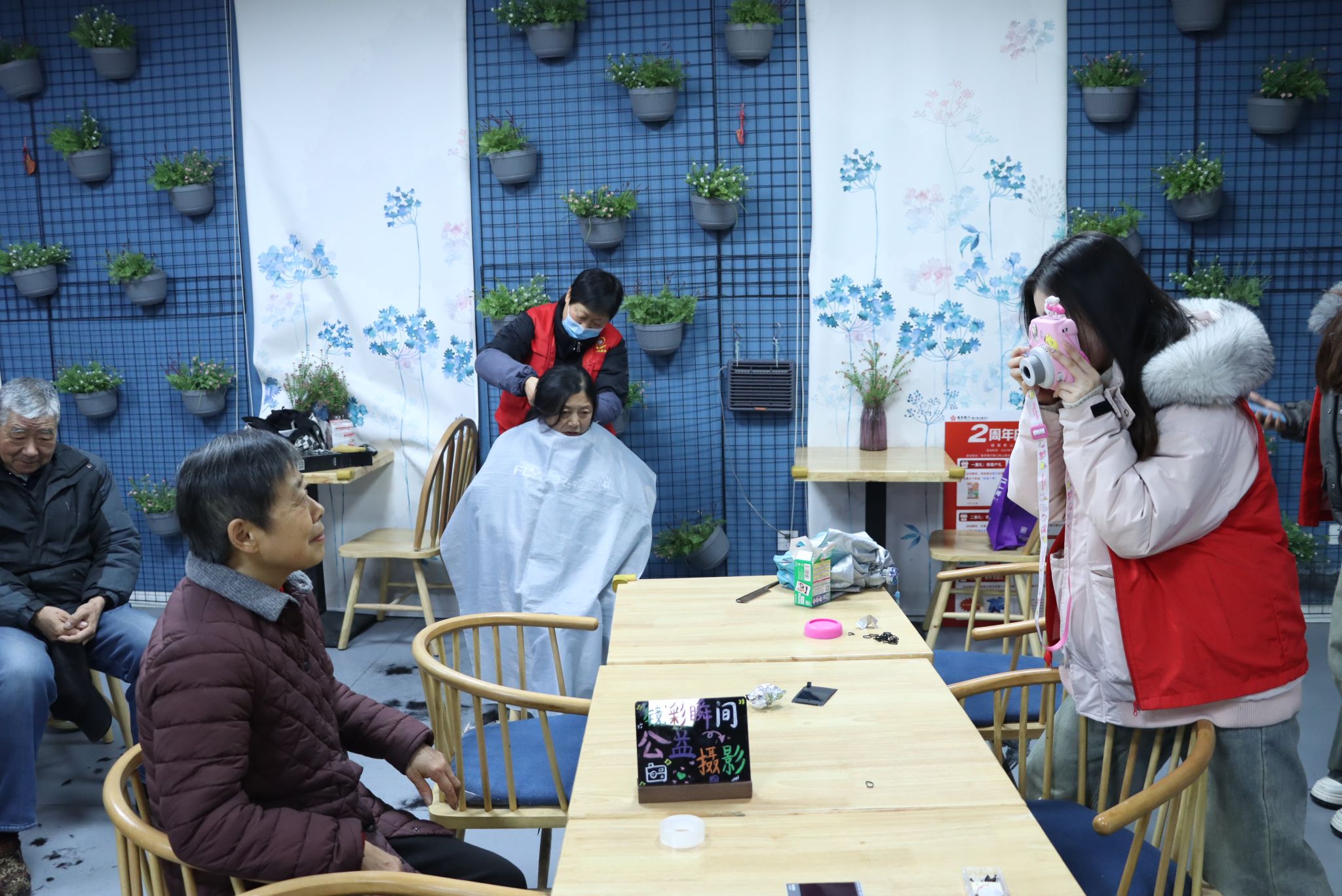 本次活动大学生志愿者联合社会公益组织,为社区居民精心定制了多项便民服务。“‘镜’彩瞬间”公益摄影区域,志愿者们用镜头定格居民们的幸福瞬间,为他们留下美好的回忆;“头等大事”爱心理发摊位前,志愿者们手法娴熟地为居民修剪头发,让大家精神焕发;“‘发’现美好”编发盘发处,志愿者们发挥创意,为居民打造出时尚的发型;“‘医’路同行”健康义诊和“笑口常开”口腔检查区域,专业的志愿者们为居民提供免费的身体检查和健康咨询,普及健康知识;“‘修’复如初”家电维修摊位上,志愿者们凭借专业技能,为居民维修各类家电,解决生活中的小烦恼;“‘味’你而来”美食试吃区域,各种美味的小吃让居民们大饱口福。