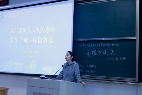 11月23日,由校团委主办,汽车学院、梦溪学院、食生学院、材料学院、汽车工程研究院、艺术学院、药学院承办的第79期团校第1讲在讲堂群302准时开讲,本次团课由汽车学院团委书记陈佳楠老师担任主讲嘉宾,来自7个学院的百余名团干部参加了此次团课。