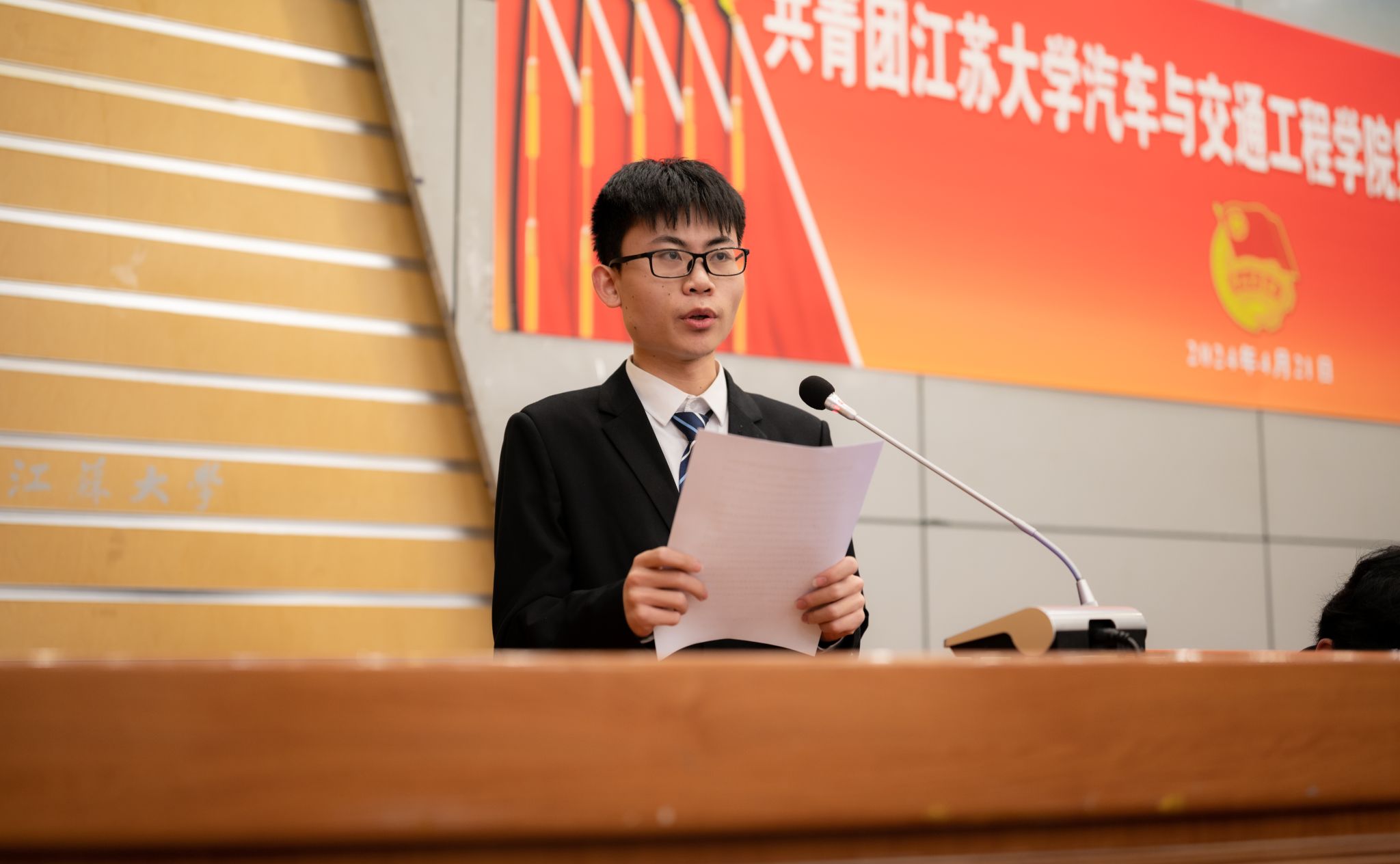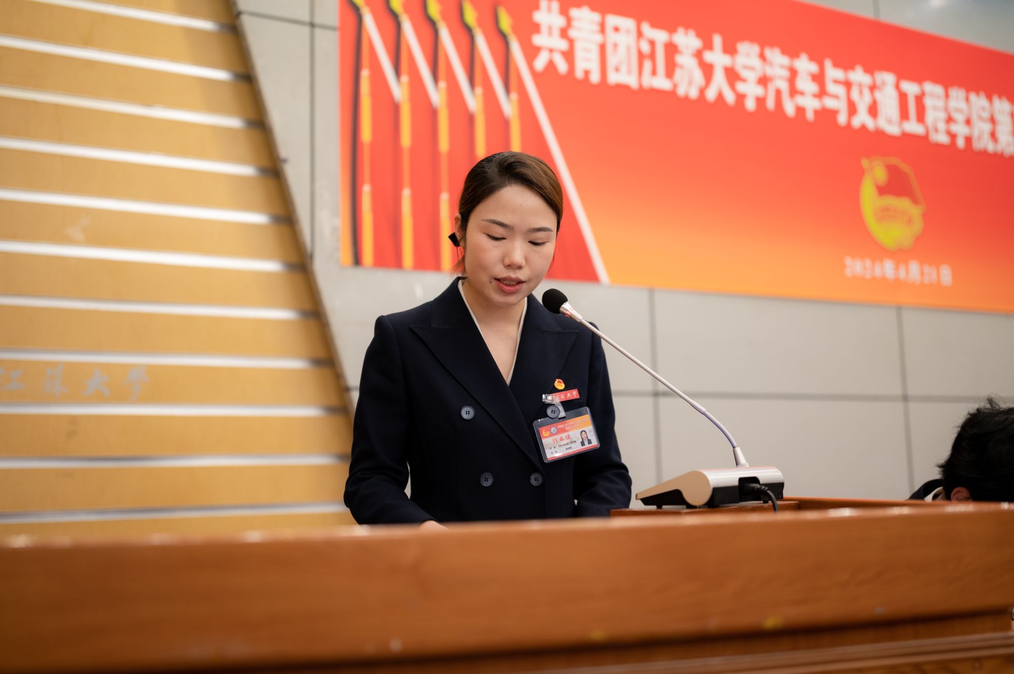 开幕式结束后,汽车与交通工程学院团委书记陈佳楠代表共青团江苏大学汽车与交通工程学院第三届委员会向大会作工作报告。