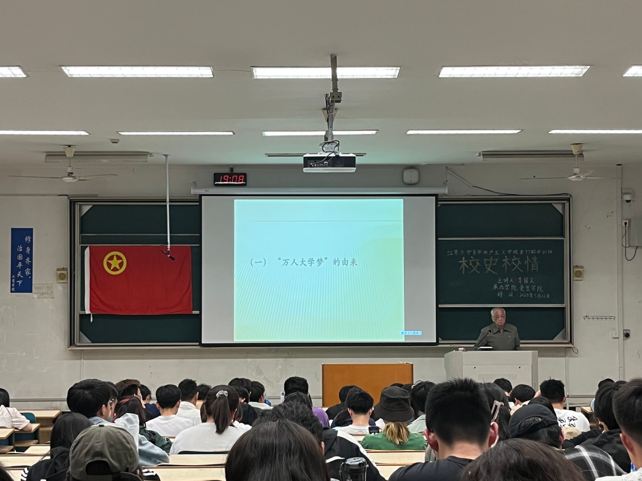 5月12日,由校团委主办,汽车与交通工程学院、食品与生物工程学院、艺术学院、药学院、财经学院、环境与安全工程学院、机械工程学院、卓越学院承办的第77期团校第8讲“校史校情”主题团课在讲堂群103教室准时开讲,本次团课由关工委李国文老师担任主讲嘉宾,来自8个学院的近百名团干部参加了此次团课。
