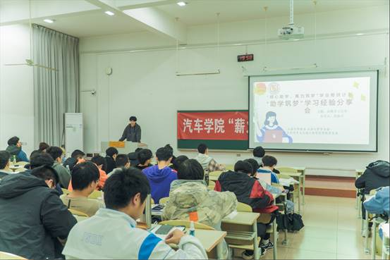 为进一步加强学风建设,提高大一学生学习的积极性、主动性,帮助学生找准症结、提高认识、坚定信心,鼓励他们以更好的精神风貌迎接今后的学习任务,3月22日,汽车学院在京江楼2108和2104教室举办“薪火课堂”活动,车辆(卓越)2102莫雯竣同学和车辆(卓越)2101高嘉兴同学分别受邀成为主讲人,近200人参加。