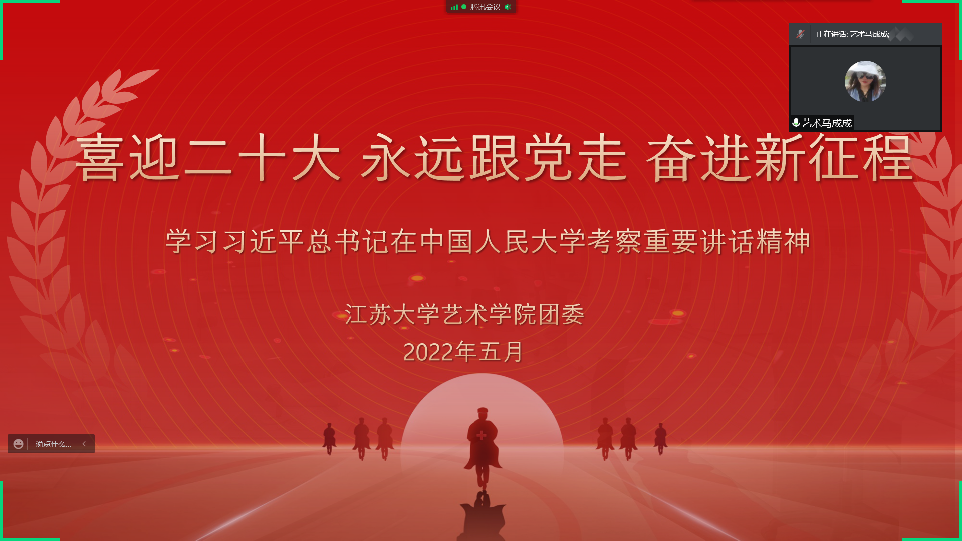 座谈会上,马老师首先带领大家观看了江苏大学“五四”信仰公开课、马克思主义学院硕研2101团支部展示的节目《错位时刻》,用“五四先驱李大钊先生和江大学子”跨越百年的时空对话引发同学们的思考,何为青年马克思主义者?在习近平总书记考察中国人民大学重要讲话精神中找到了答案,青年马克思主义者就是立大志、明大德、成大才、担大任,努力成为堪当民族复兴重任的时代新人,他们的青春在为祖国、为民族、为人民、为人类的不懈奋斗中绽放绚丽之花。接着,马老师举了冬奥小将谷爱凌的例子,谷爱凌在场上的霸气和在场下的谦虚可爱,体现了当代年轻人一种健康向上的精神风貌。